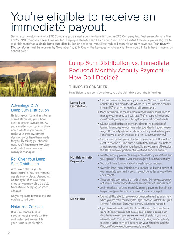 A successful lump sum window is supported by a thoughtful, well-planned, and well-executed communication strategy. Involve your communication consultant from the beginning so they can gather information early to develop messages to help participants feel confident about their benefit decisions.