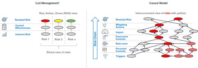 The causal approach also allows risk managers to move past normalcy bias inherent in discrete scenario analysis and develop a plausible and fluid story of what may happen. They can go beyond the “frequency and severity” world that typically limits their focus to a fixed probability of loss that shows the pathways of how, when, and what triggers drive risk.